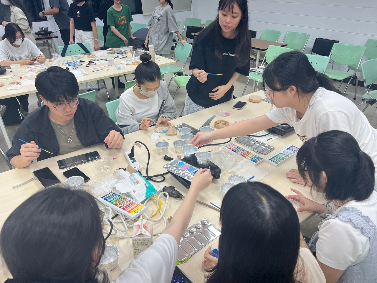 臺北科技大學學生共同討論、交流,並實際製作屬於自己的多層透視油畫蠟燭
