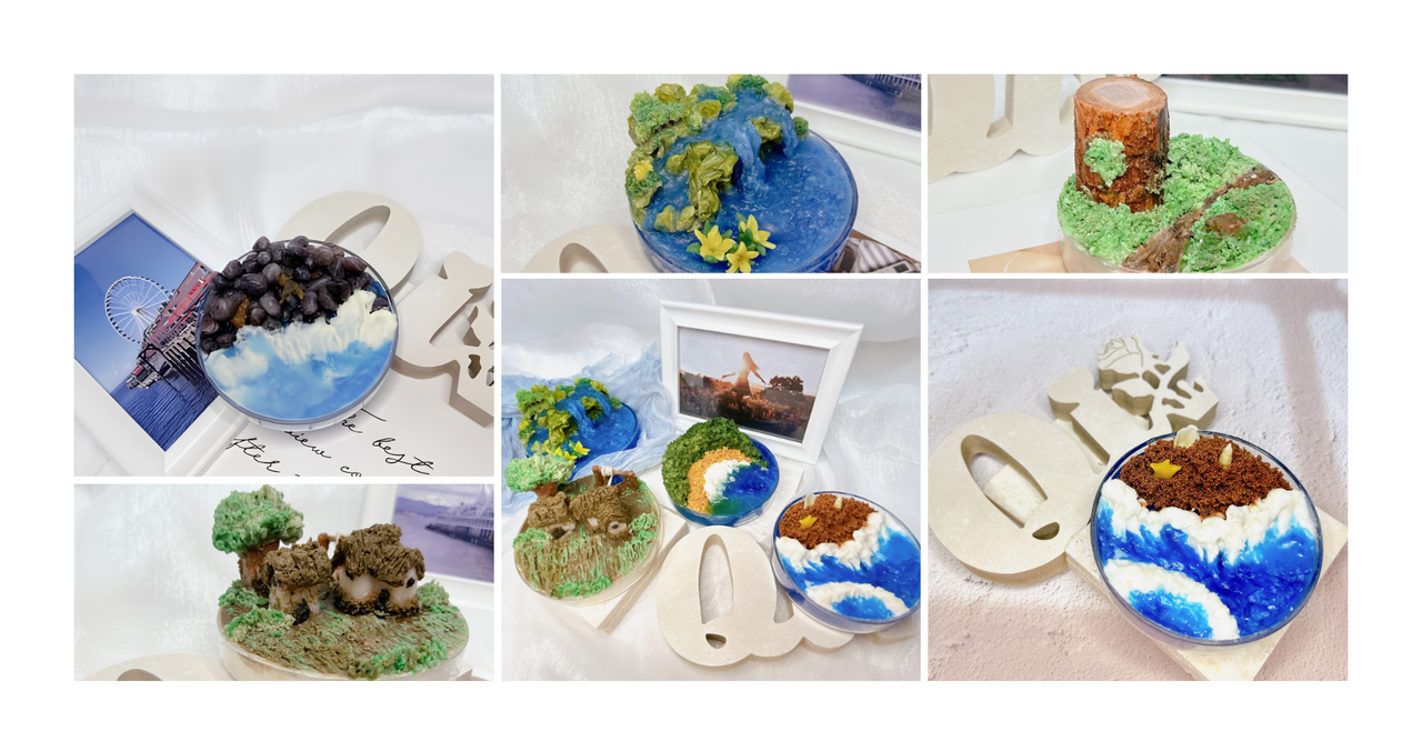 本課程透過仿真微景觀蠟燭創作,帶領學員將內在感受轉化為一座可被看見的風景。讓你用雙手把它做出來。從山、海到地形,每一層都是你親手堆疊的世界。從地形輪廓到細節堆疊,每一個步驟都是一次與自己對話的過程,更是一次溫柔的自我整理。課程將從蠟材基礎特性與地形結構建立開始,逐步引導學員學習山景、水域與場景層次的塑造方式,建立完整的景觀構成概念。